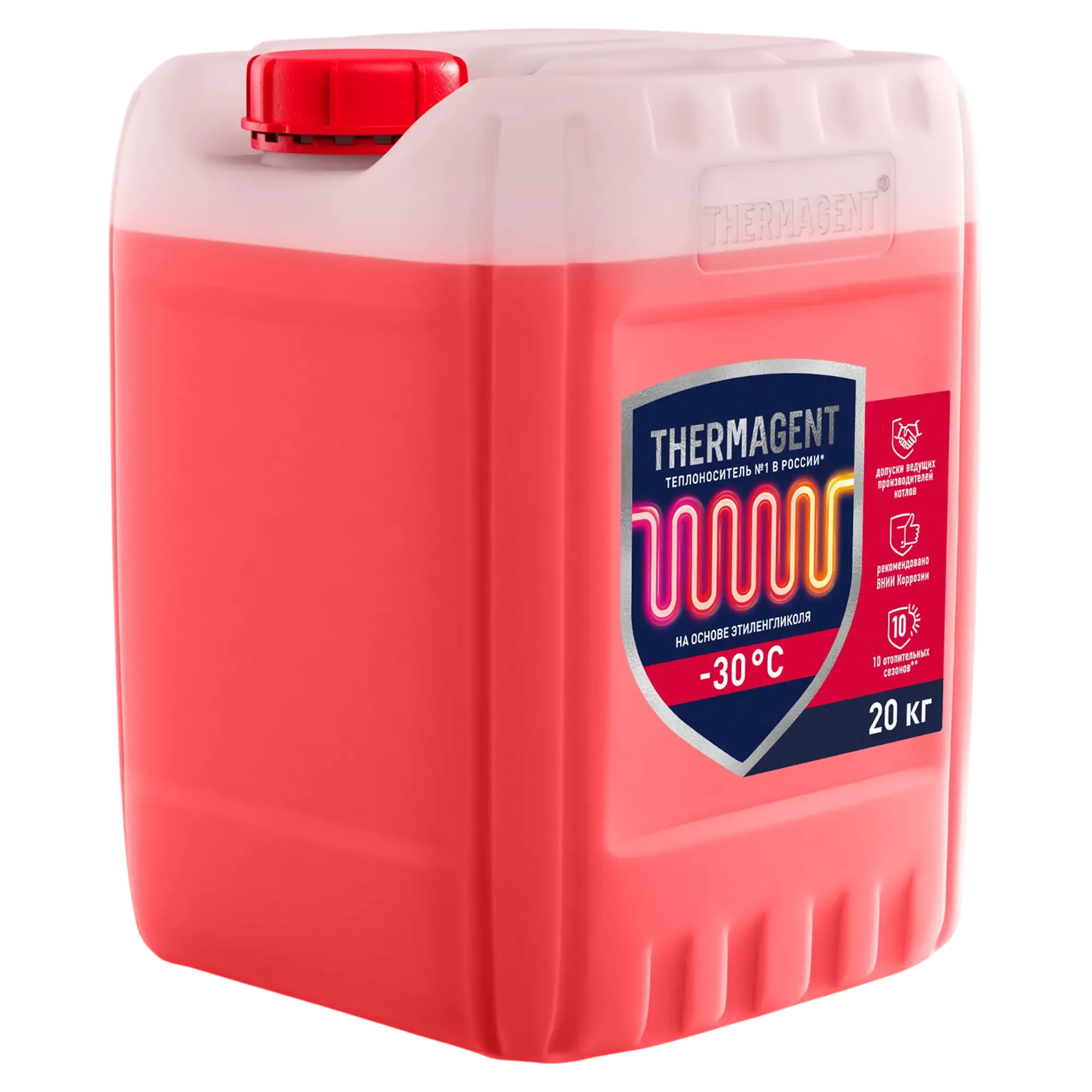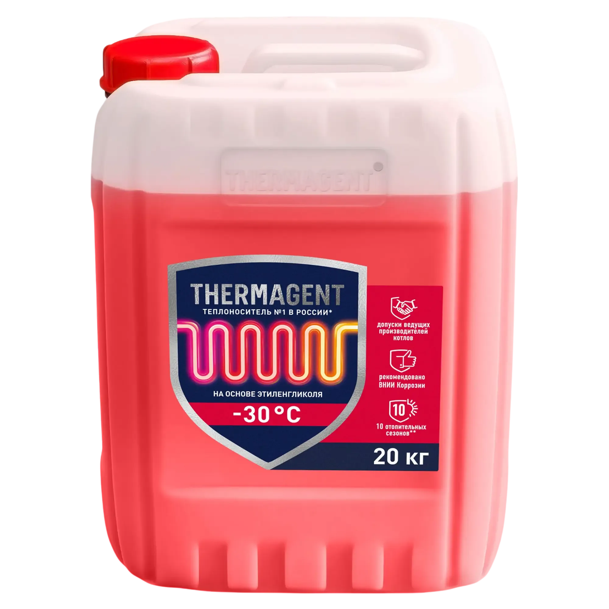 Thermagent -65°C — это профессиональный теплохладоноситель на основе этиленгликоля, предназначенный для использования в замкнутых системах отопления, вентиляции, кондиционирования, холодильных установках и тепловых насосах. Концентрат поставляется в канистре объёмом 20 литров, имеет красный цвет, и может быть разбавлен до нужной температуры замерзания: