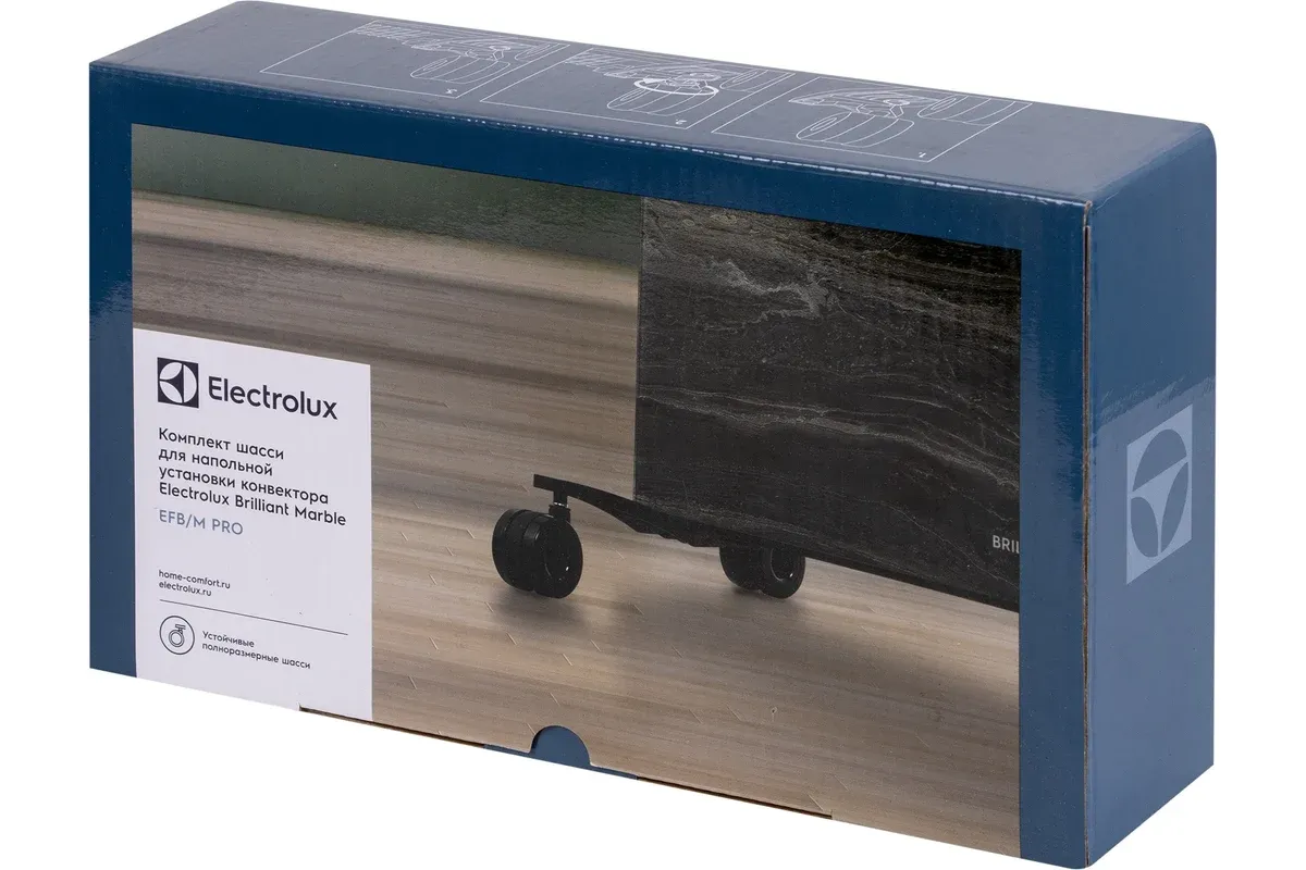 Комплект шасси EFB/M PRO — это фирменные ножки от Electrolux, предназначенные для напольной установки конвекторов серии Brilliant Marble. Они обеспечивают устойчивость, мобильность и безопасную эксплуатацию прибора без настенного монтажа.