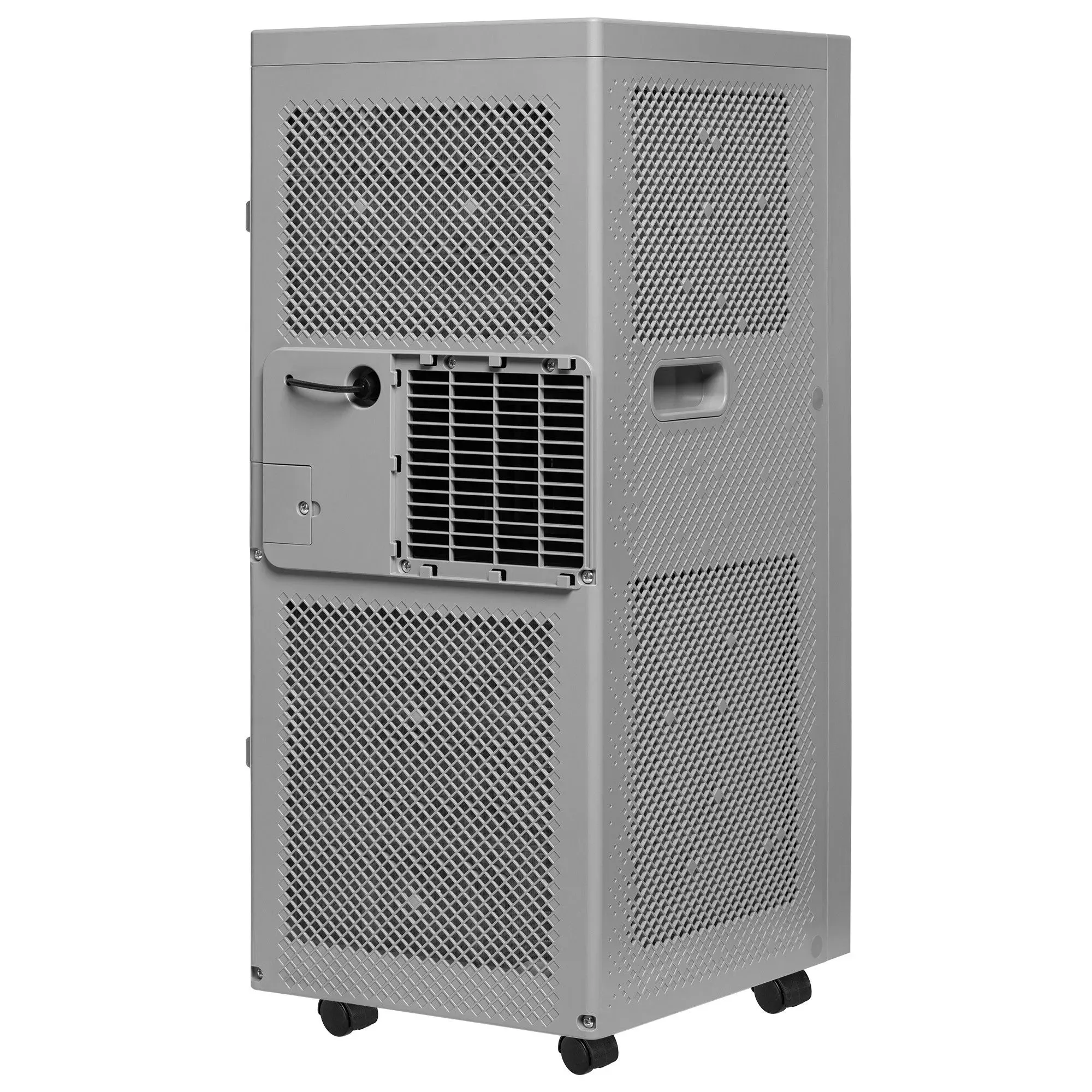 Таймер позволяет программировать автоматическое включение и отключение прибора. Кондиционер укомплектован гибким воздуховодом и адаптером для окна, мобильная конструкция на колесиках обеспечивает простоту перемещения.