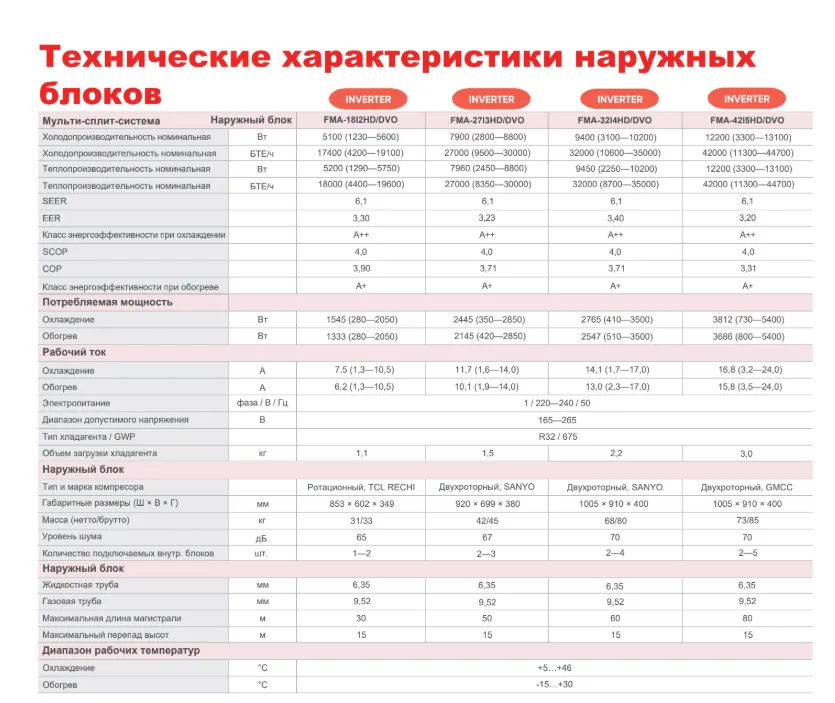 В качестве хладагента используется озонобезопасный фреон R32, обладающий высокой удельной холодо- и