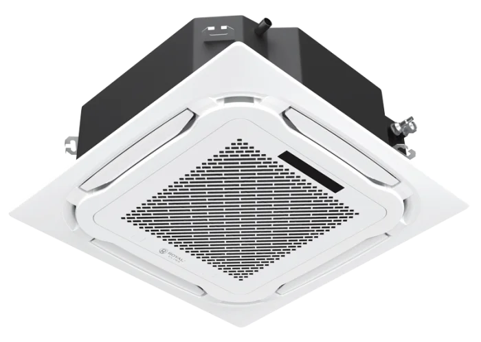 Дизайн внутреннего блока выполнен в кассетной форме, предназначенной для установки в стандартные потолочные ячейки. Наружный блок отличается прочностью и устойчивостью к перепадам температуры, что гарантирует надёжную работу даже в сложных климатических условиях.