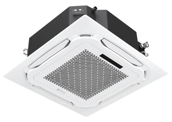 Дизайн внутреннего блока выполнен в компактной кассетной форме, предназначенной для установки в стандартные потолочные ячейки. Наружный блок отличается прочностью и устойчивостью к перепадам температуры, что гарантирует надёжную работу даже в сложных климатических условиях.