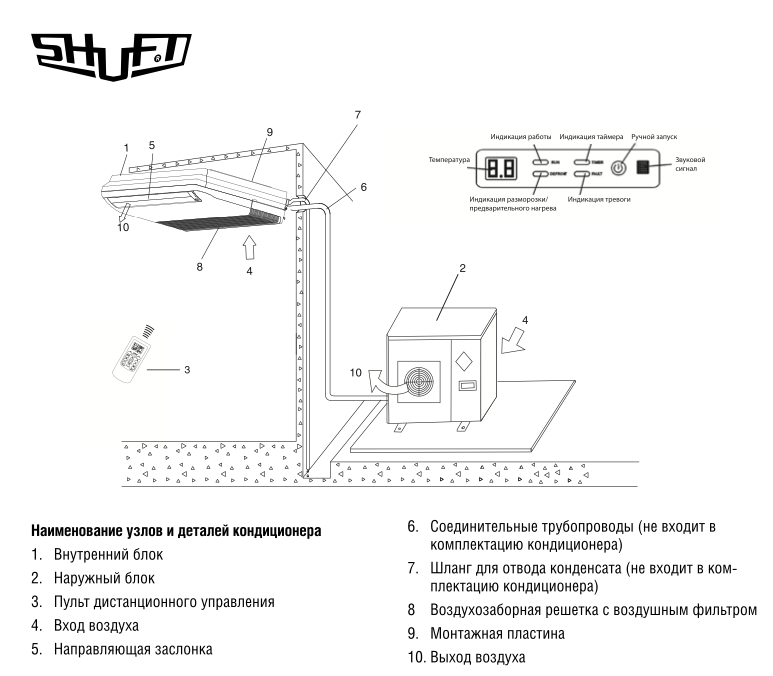 ● Компактное исполнение: Внутренний блок имеет небольшую толщину, что позволяет максимально экономить пространство при потолочном монтаже.