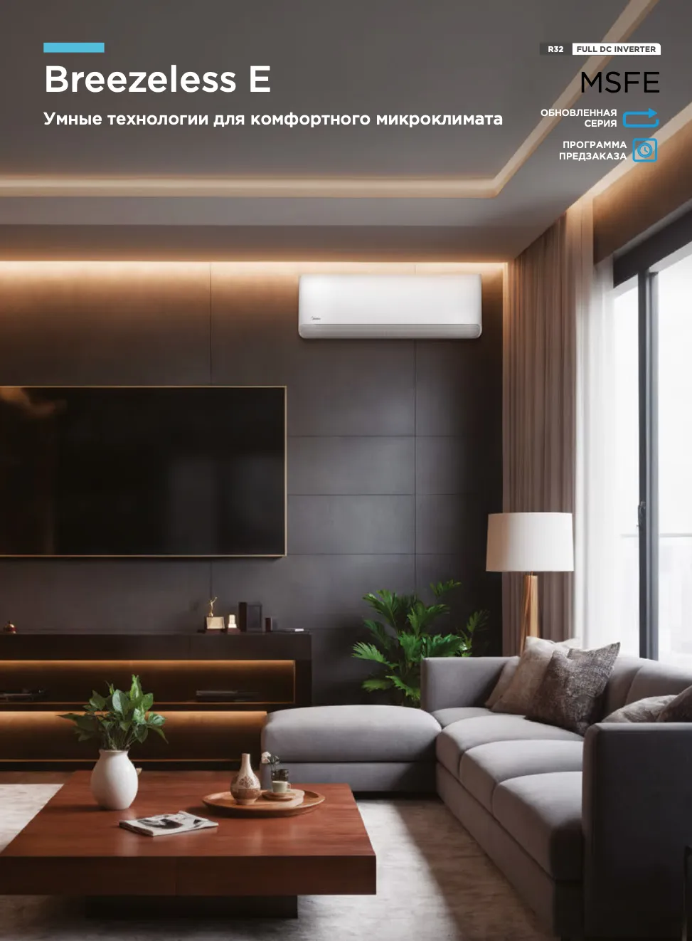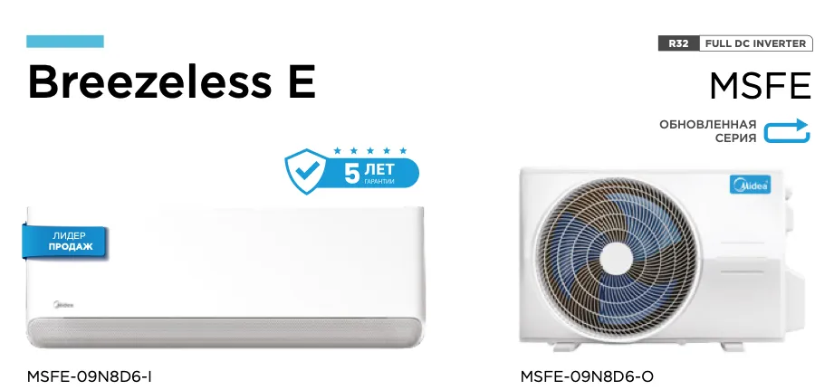 Midea Breezeless E MSFE-24N8D6-I/MSFE-24N8D6-O – это настенная бытовая сплит-система высокой производительности.