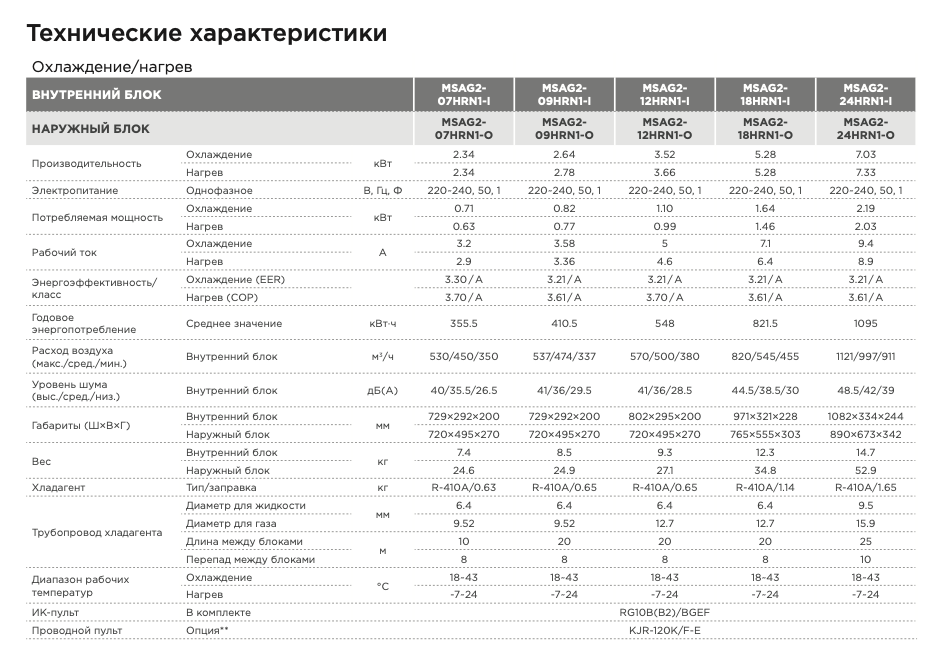 Внутренние блоки климатического оборудования отличаются стильным дизайном и возможностью тонкой настройки с помощью пульта дистанционного управления. Одна часть устройств линейки наделена инверторной технологией, а другая оснащена классическим компрессором.