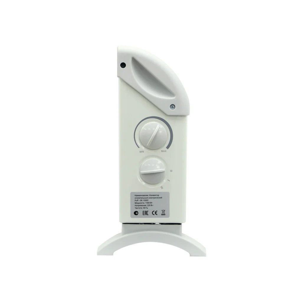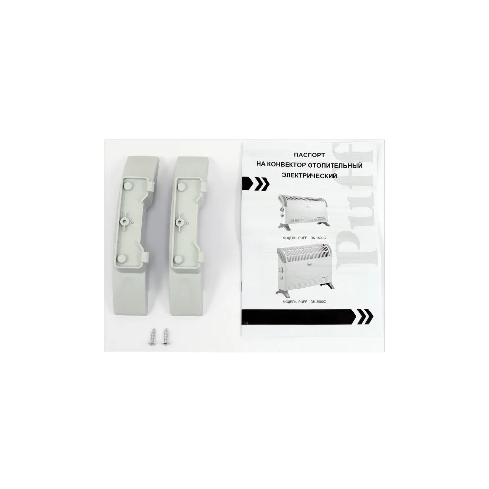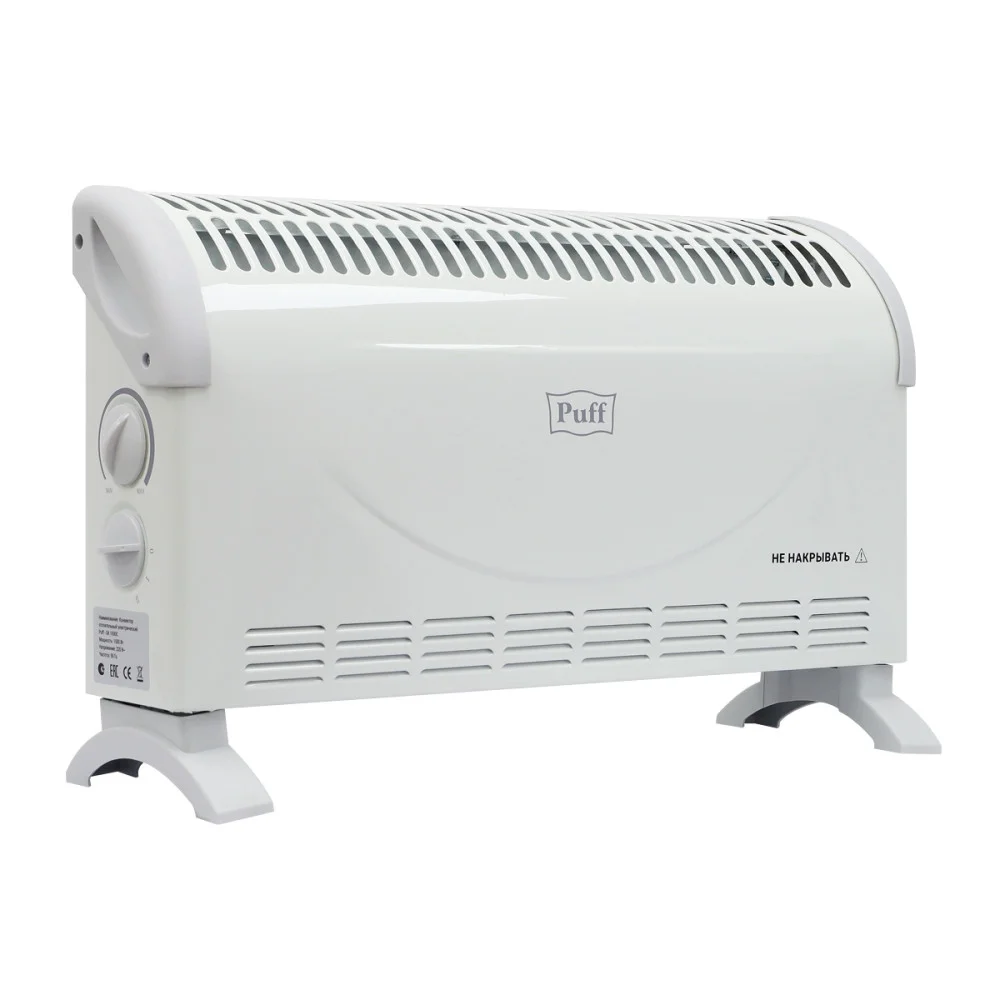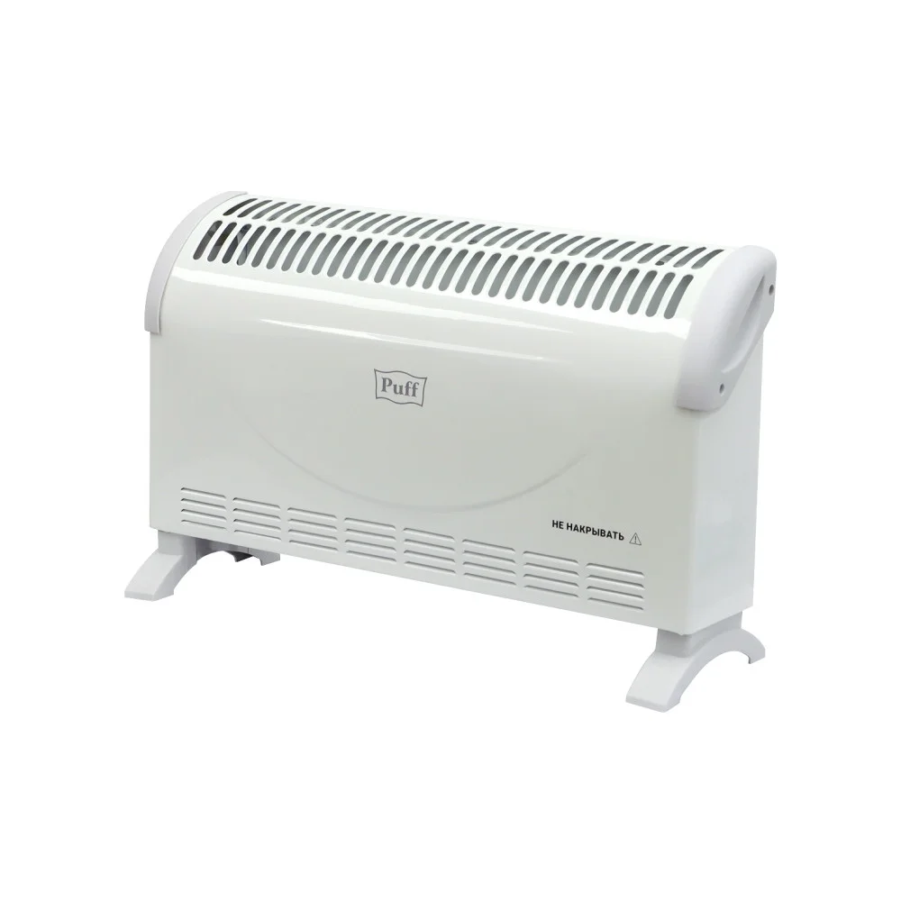 Электрический конвектор Puff-ОК 2000C — это современное устройство, предназначенное для эффективного отопления помещений за счёт работы от электросети. Его принцип действия основан на естественном движении воздуха: холодный поток поступает снизу, нагревается внутри корпуса при прохождении через нагревательный элемент и выходит через верхние вентиляционные отверстия, обеспечивая комфортную температуру.