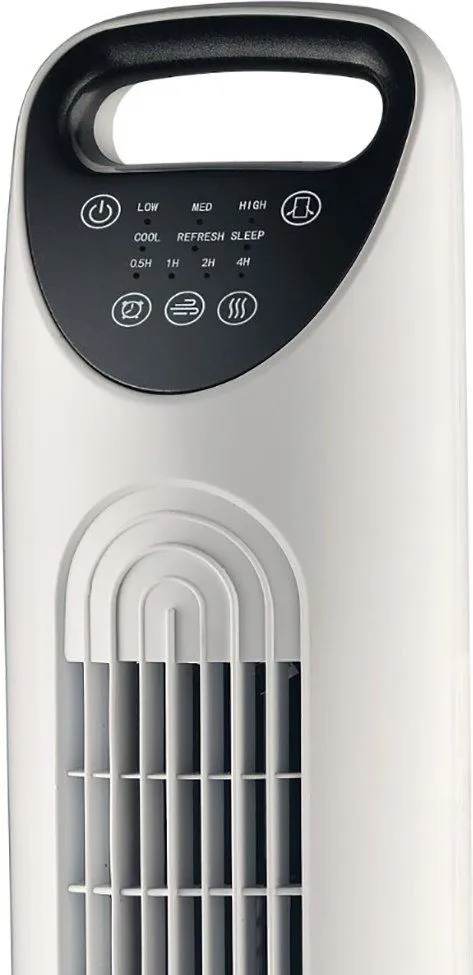 Управление вентилятором осуществляется через сенсорную панель и пульт ДУ. Пользователь может выбрать одну из трёх скоростей работы, настроить таймер автоматического отключения и использовать ночной режим для тихой работы. Подсветка панели управления и индикация включения делают эксплуатацию удобной даже в тёмное время суток.