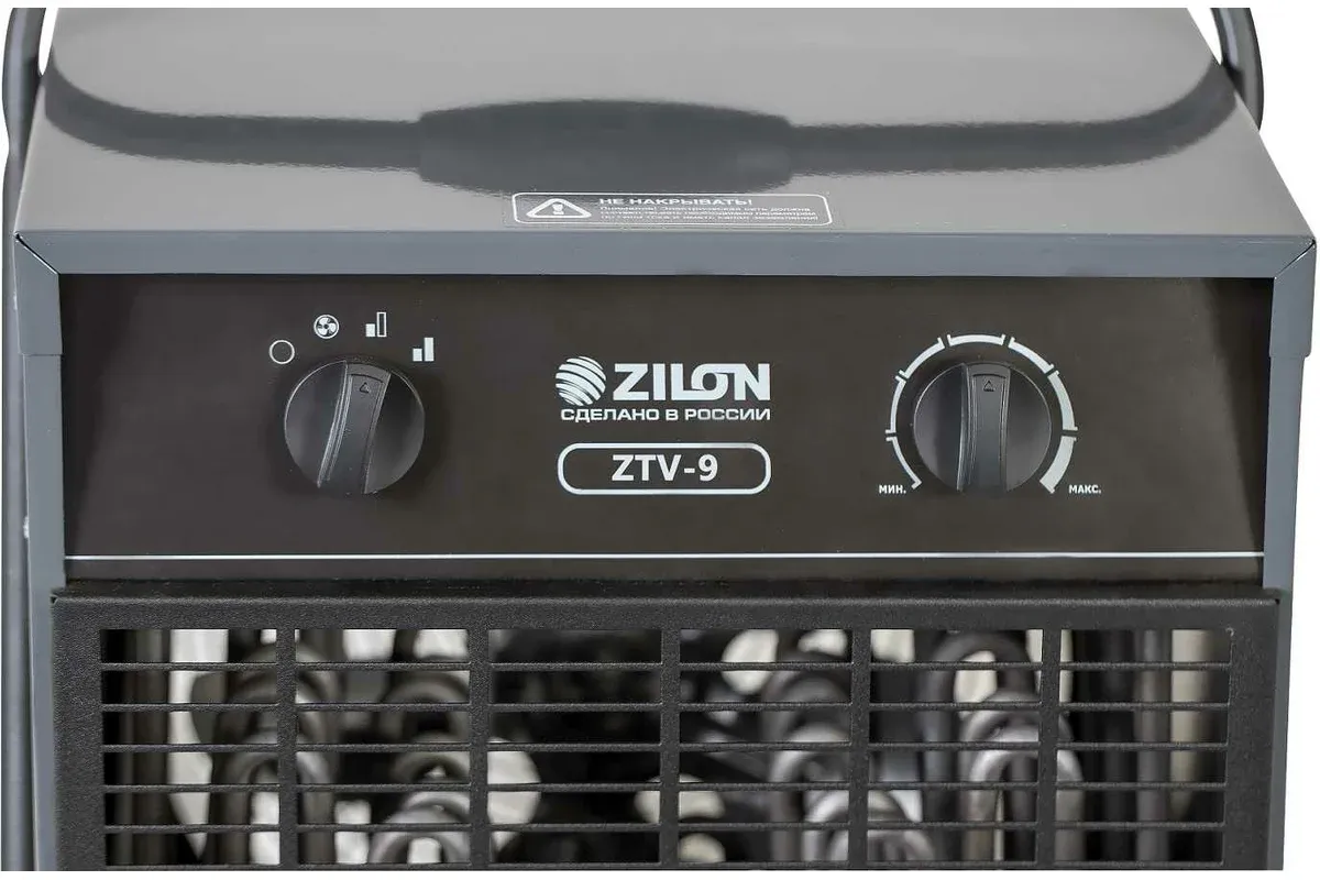 ZTV-9 — это мощный теплогенератор, рассчитанный на работу в неотапливаемых помещениях и при низких температурах. Модель оснащена металлическим нагревательным элементом прямого типа и работает в трёх режимах: вентиляция без нагрева, обогрев на 4.5 кВт и максимальный режим на 9 кВт. Это позволяет гибко регулировать интенсивность обогрева в зависимости от задач и условий.