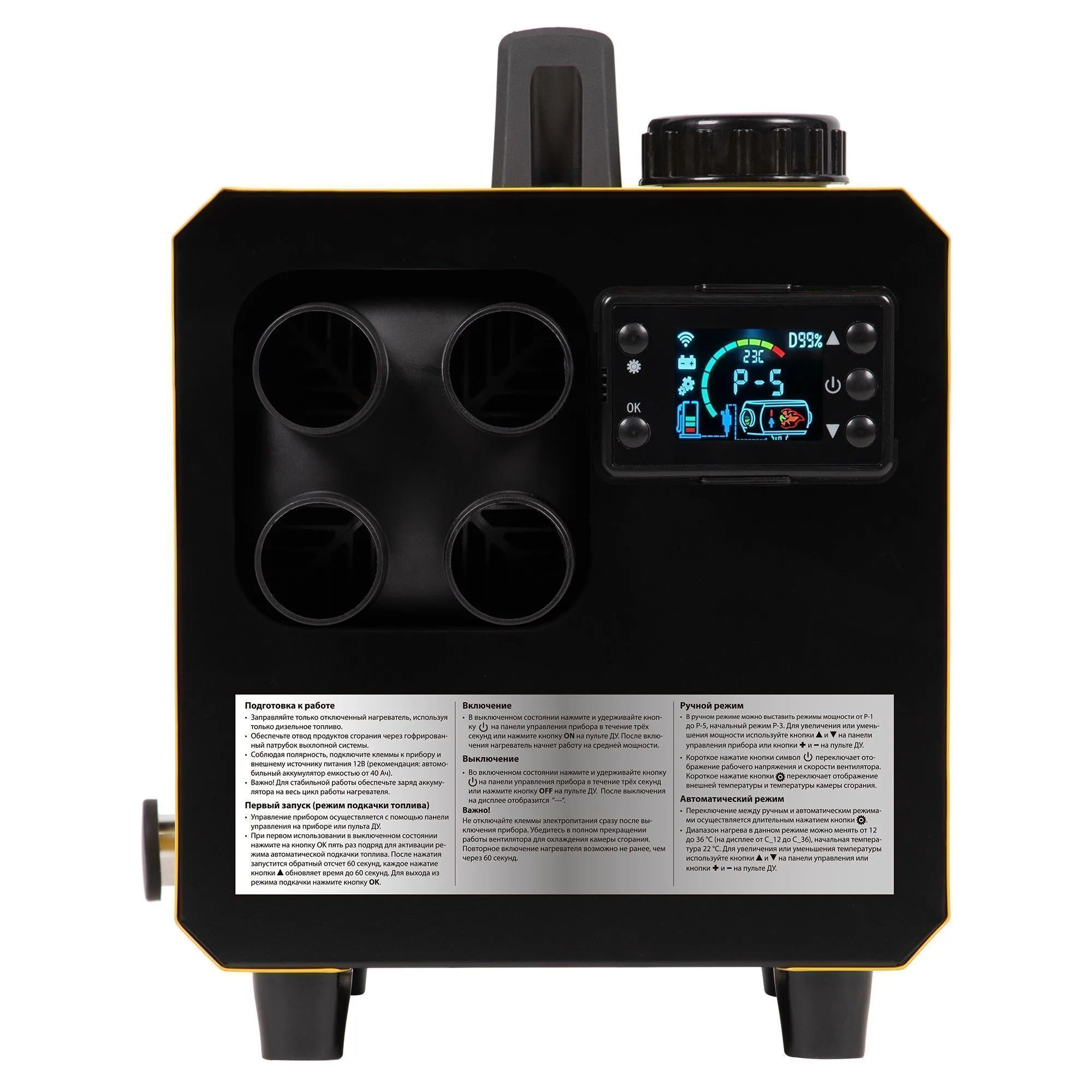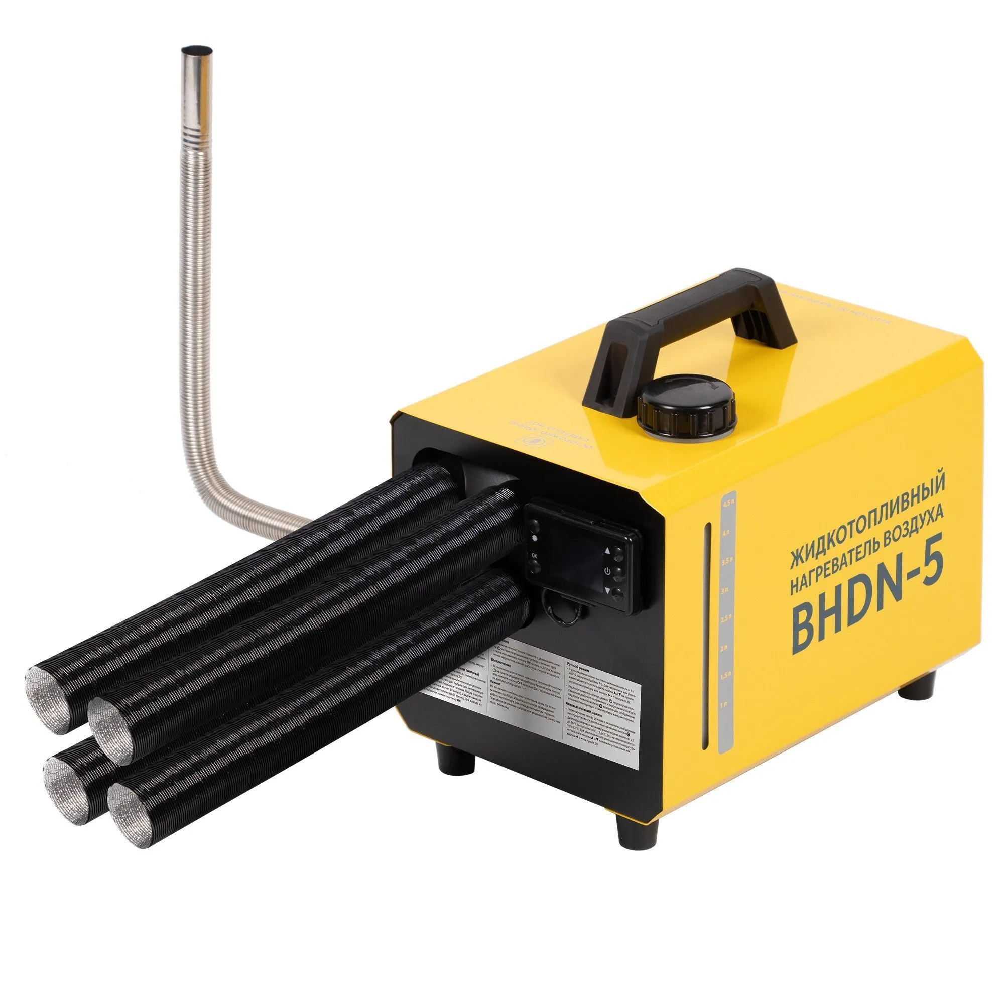 Тепловая дизельная пушка непрямого нагрева Ballu BHDN-5 серии Tundra – это автономный переносной дизельный обогреватель, применяемый для обогрева жилых, строительных и подсобных помещений (палаток, гаражей, бытовок) либо для локального прогрева отдельных зон, а также в грузоперевозках.Воздух из помещения при помощи вентилятора, расположенного с тыльной пушки, втягивается внутрь корпуса и, частично попадая в горелку теплообменника, который является камерой сгорания, смешивается с распылённым дизельным топливом, образуя воздушно-топливную смесь, которая автоматически поджигается. Нагретый воздух вместе с продуктами сгорания, пройдя через теплообменник, выбрасывается наружу из дымохода, расположенного в боковой части корпуса пушки. Весь остальной объём воздуха, обтекая теплообменник, нагревается и выбрасывается в обогреваемое помещение с помощью 4-х воздуховодов для разнонаправленного локального обогрева, не смешиваясь с продуктами сгорания.