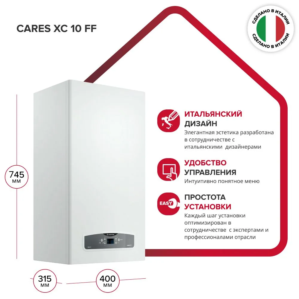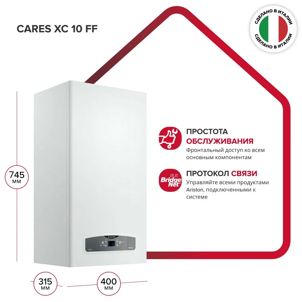 Настенный котел Ariston CARES XC 10 FF NG двухконтурного типа, достаточно экономичный, для обогрева помещений и организации горячей воды для бытовых нужд. Европейская комплектации и сборка агрегата, а так же современную система защиты. Способность сохранять ровную работу в самых разных условиях.