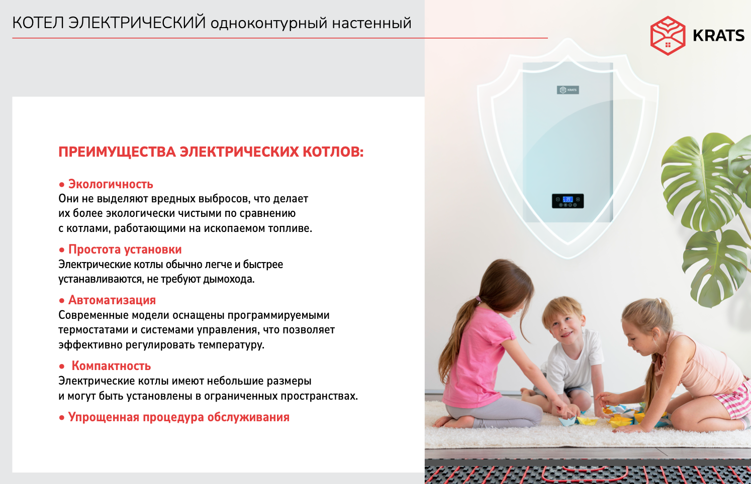 Отопительный котел KRATS 8кВТ 1к настенный Wi-Fi. Одноконтурный, мощность 8 кВт, встроенные насос, расширительный бак, Wi-Fi.ПРЕИМУЩЕСТВА ЭЛЕКТРИЧЕСКОГО КОТЛА KRATS