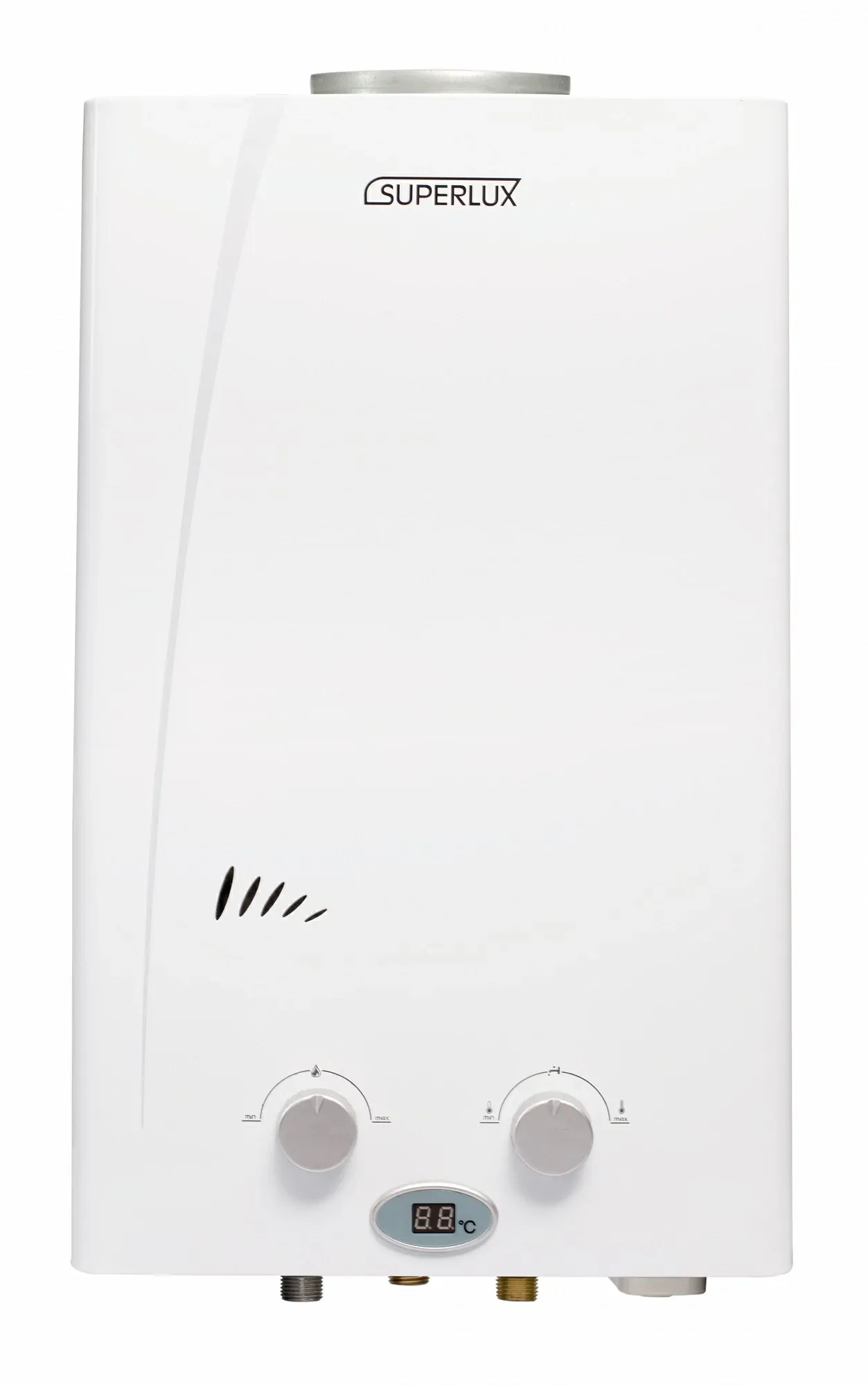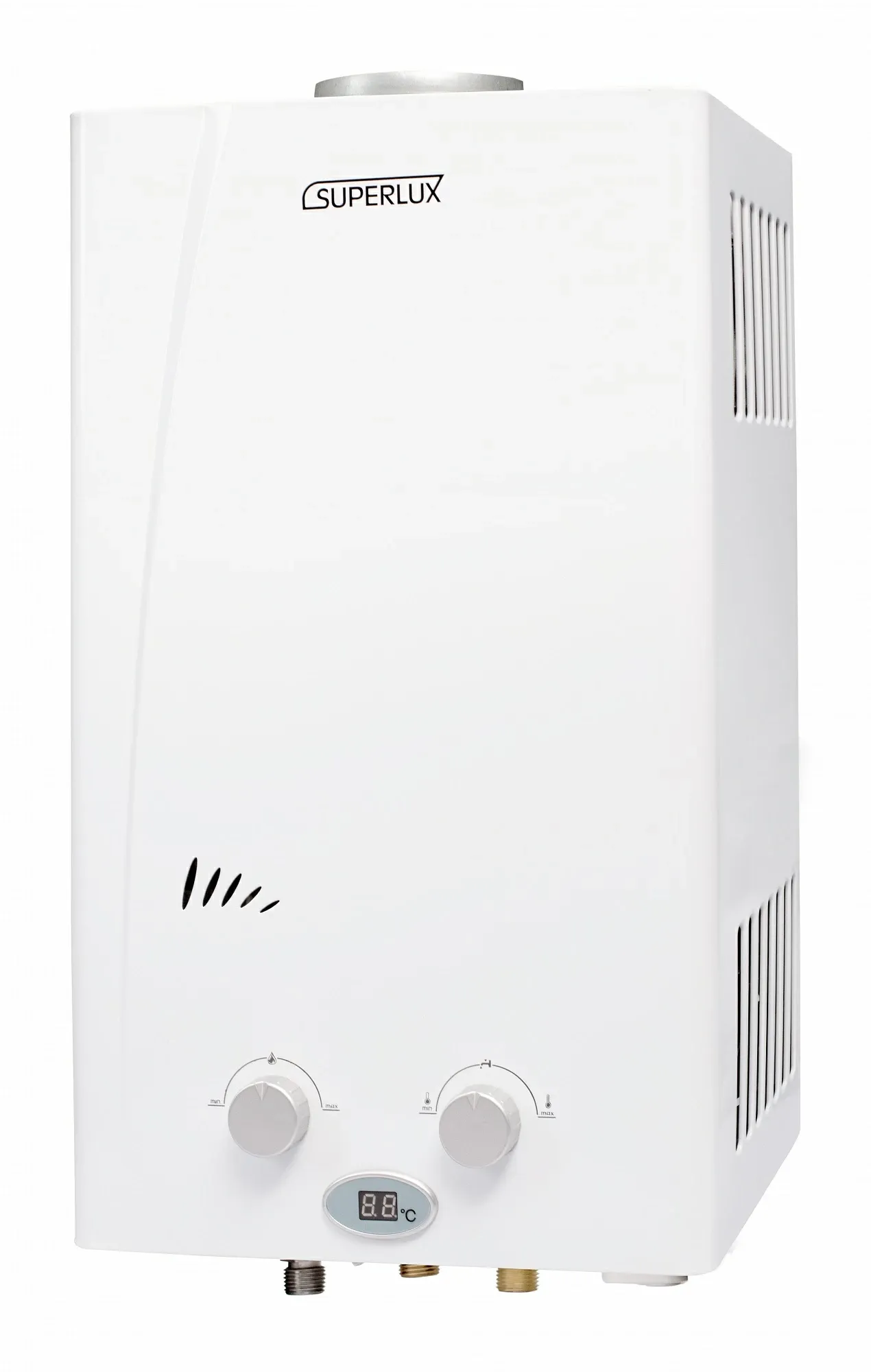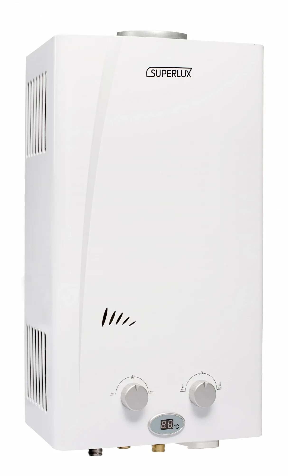 Использование газового проточного прибора Superlux 10L CF NG позволяет всегда иметь под рукой возможность получения горячей воды в краткие сроки. Водонагреватель приспособлен к работе при падении давления газа либо воды. Средства контроля поддерживают безопасность колонки. Размещается водонагреватель на стене вблизи отвода продуктов сгорания.Производитель Ariston разработал газовую колонку серии SUPERLUX CF NG с проточным нагревом воды. Газовая колонка соответствует всем нормам и требованиям безопасности, а так же техническим условиям эксплуатации.