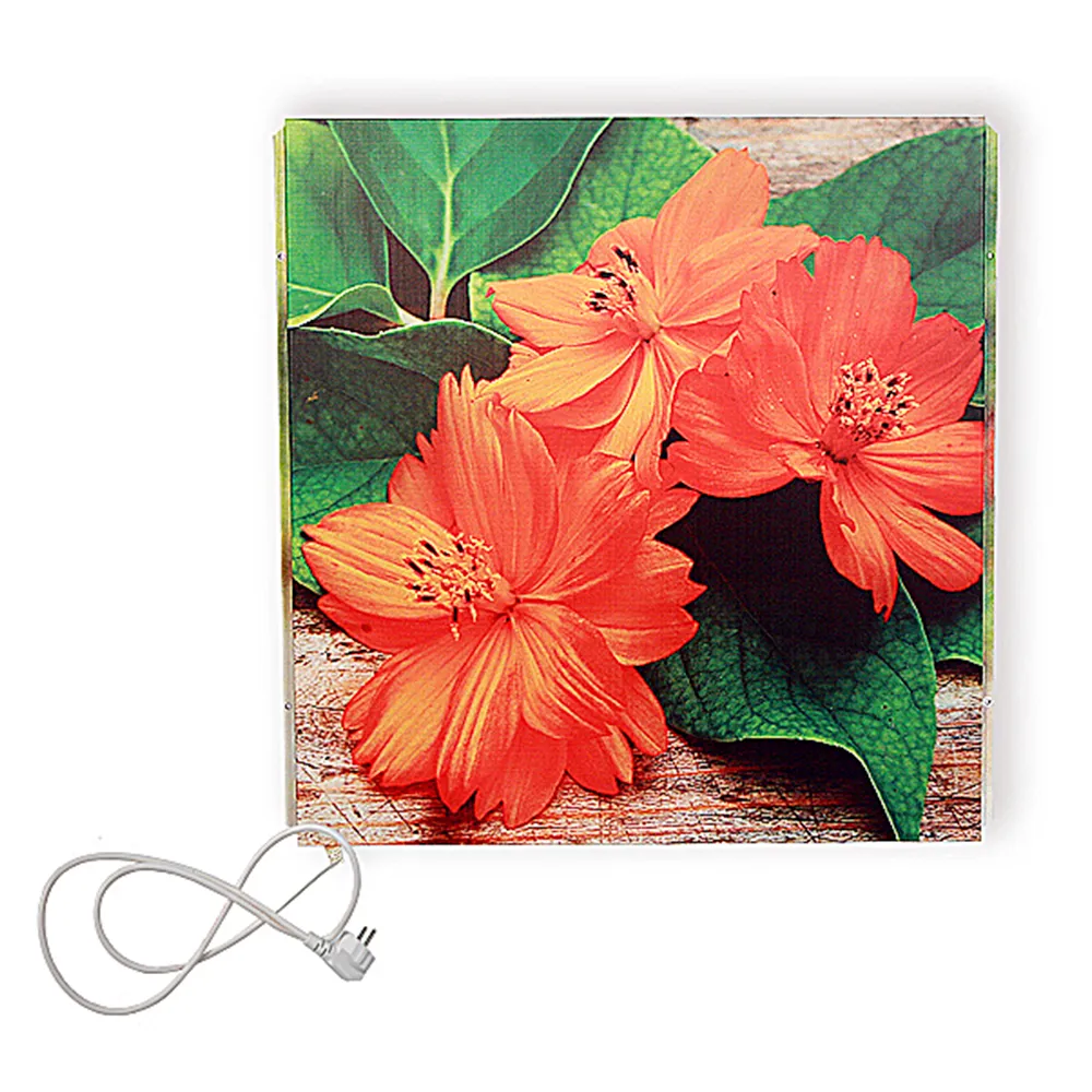 Главная особенность модели — возможность нанесения полноцветного изображения методом УФ-печати. Это позволяет превратить обогреватель в декоративную панель, картину или арт-объект, гармонично вписывающийся в интерьер. Клиент может выбрать изображение из готовой коллекции или предоставить собственное — фото, логотип, иллюстрацию. Печать устойчива к выгоранию, влаге и механическим воздействиям, не выделяет запахов и не теряет насыщенность со временем.