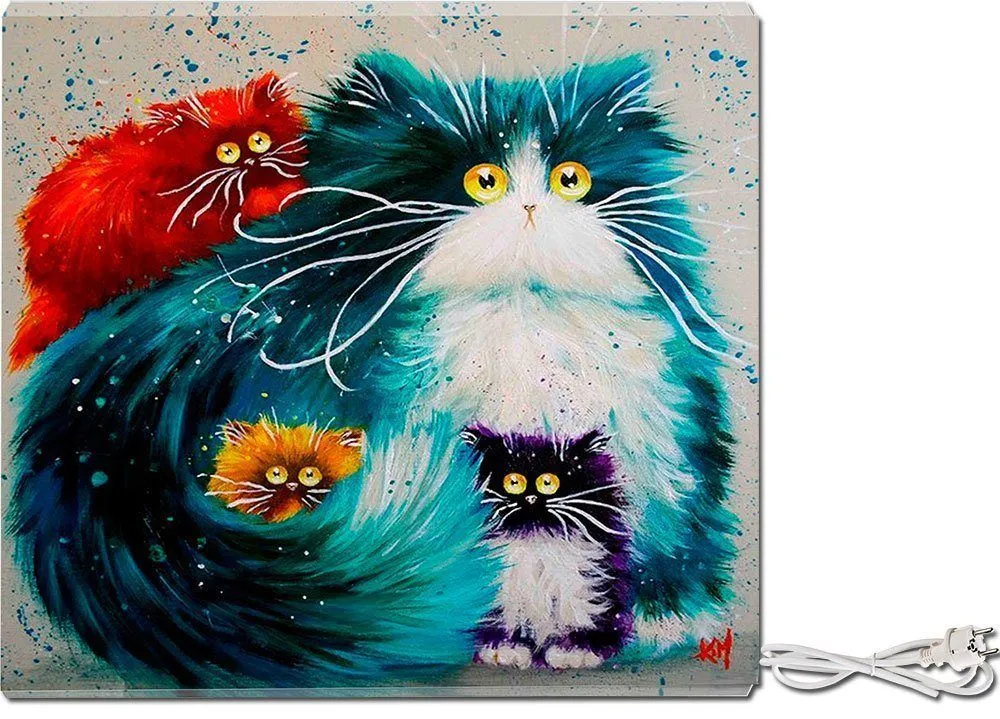 Нагревательный элемент — низкотемпературный ТЭН, встроенный в металлический корпус с антикоррозийным порошковым покрытием. Устройство не имеет термостата или регулировки мощности, управление осуществляется вручную. Работает от сети 220–230 В, класс защиты IP54 допускает использование в помещениях с умеренной влажностью. Обогреватель не сушит воздух, не создаёт шума и не поднимает пыль, что делает его идеальным для спален, детских комнат и кабинетов. Монтаж возможен на стену или потолок, в горизонтальном или вертикальном положении. Цвет корпуса — белый, лицевая сторона — с изображением. Устройство сертифицировано по стандартам ЕАЭС, соответствует требованиям ТКП 45-4.01-278-2012, и поставляется с официальной гарантией сроком 12 месяцев. Срок службы — не менее 5 лет при соблюдении условий эксплуатации.