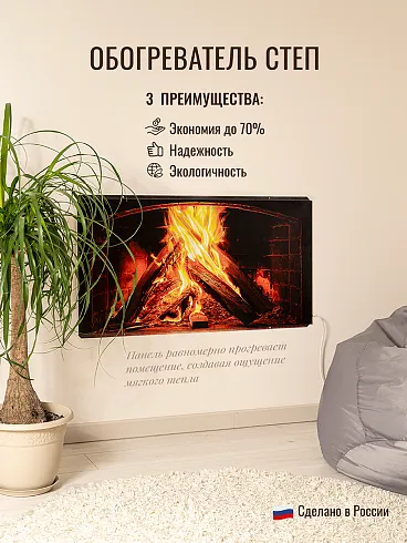 СТЕП-250/0.96×0.52 с УФ-печатью — это декоративный инфракрасный обогреватель мощностью 250 Вт, предназначенный для локального обогрева помещений площадью до 6 м². Производится в России, официально поставляется в Беларусь и обслуживается в Минске.