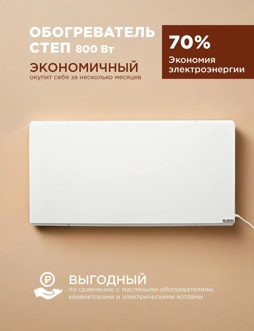 СТЕП2-800/1.4×0.7 — это влагозащищённый инфракрасный обогреватель мощностью 800 Вт, предназначенный для зонального обогрева помещений площадью до 20 м². Производится в России, официально поставляется в Беларусь и обслуживается в Минске.