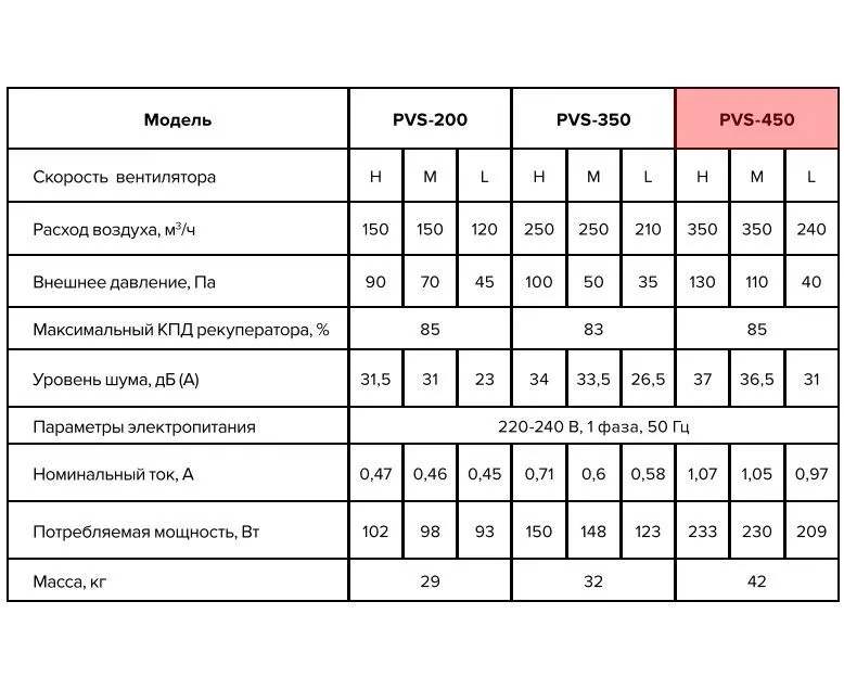 Производительность: 240–350 м³/ч Мощность вентилятора: 209–233 Вт Уровень шума: 31–37 дБРекуператор: пластинчатый мембранный, КПД до 90 % Фильтрация: EU5, контроль загрязнения по времениЭлектропитание: 1 фаза / 230 В / 50 Гц / до 1.07 А Габариты (Д×Ш×В): 1210 × 820 × 230 мм Вес: 32 кг Класс защиты: IP20 Материал корпуса: пластик Управление: пульт с недельным расписанием и самодиагностикойМонтаж: подвесной или в помещении, к круглым каналам Температурный диапазон: –15 °C…+40 °C