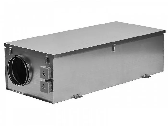 Устройство оснащено электронагревателем с ТЭНами из нержавеющей стали, фильтром класса EU5, вентилятором с асинхронным двигателем и внешним ротором, уплотнёнными подшипниками, не требующими обслуживания, и встроенными термоконтактами. Двухступенчатая защита от перегрева: — первая ступень — автоматический перезапуск при 60 °C — вторая ступень — ручной перезапуск при 120 °C