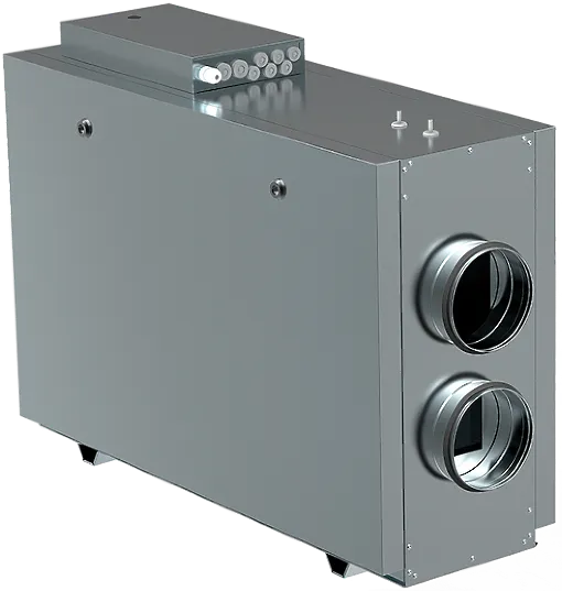 Корпус выполнен из оцинкованной стали, с звуко- и теплоизоляцией из минеральной ваты толщиной 50 мм, обеспечивающей низкий уровень шума и устойчивость к внешним воздействиям. Пластинчатый рекуператор с КПД до 60% (фактически — 54%) оснащён защитой от обмерзания, что позволяет использовать установку в холодный период года.