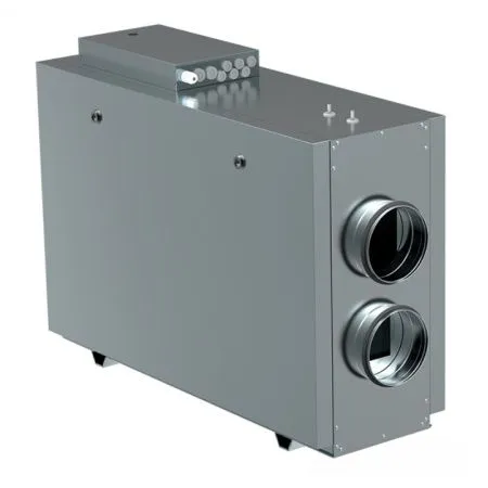 Устройство оснащено вентиляторами с малошумными крыльчатками, трёхступенчатой регулировкой скорости, термозащитой двигателя, двухступенчатой защитой от перегрева нагревателя, приточными и вытяжными фильтрами EU5, и встроенной системой управления. Возможна установка с левым или правым подключением патрубка.