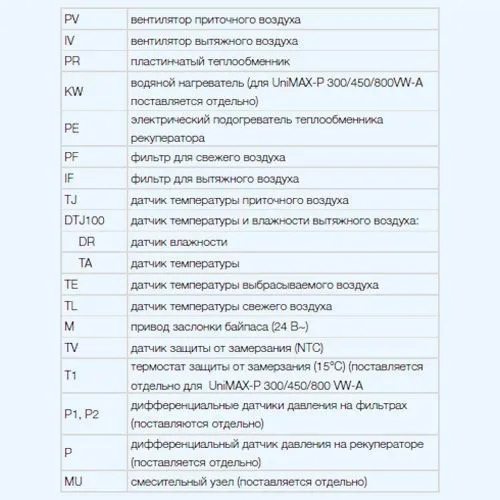 Устройство оснащено вентиляторами с назад загнутыми лопатками, асинхронными двигателями с внешним ротором и встроенной термозащитой, не требующими обслуживания. Фильтрация — EU5 на притоке и EU3 на вытяжке, обеспечивающая высокую степень очистки воздуха. Установка комплектуется системой автоматического управления и пультом UNI или PRO с кабелем 15/14 метров.