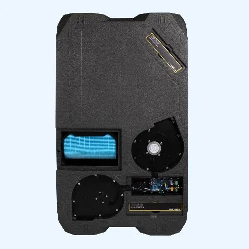 Корпус выполнен из оцинкованной стали, с шумоизоляцией, обеспечивающей низкий уровень шума — 33 дБ. Пластинчатый мембранный рекуператор обеспечивает КПД до 85%, передавая тепло и влагу приточному воздуху, при этом мембрана пропускает только молекулы воды, задерживая загрязнения.