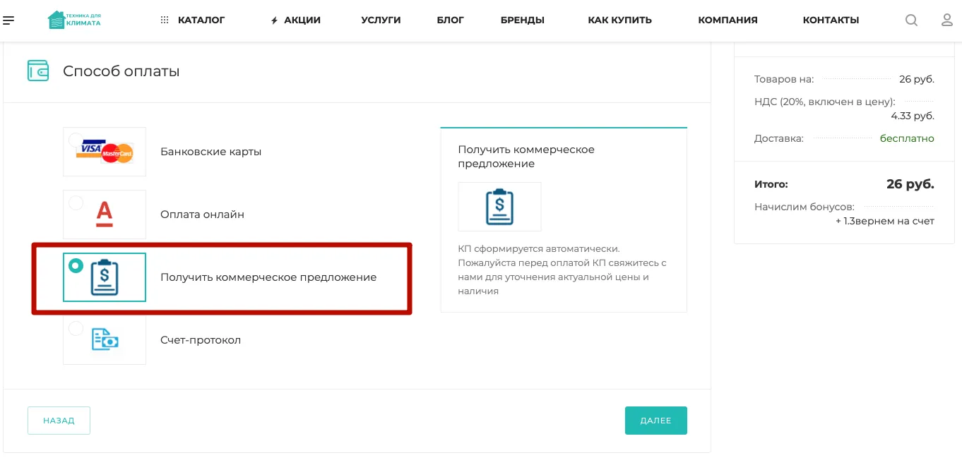 На нашем сайте вы можете получить коммерческое предложение автоматически