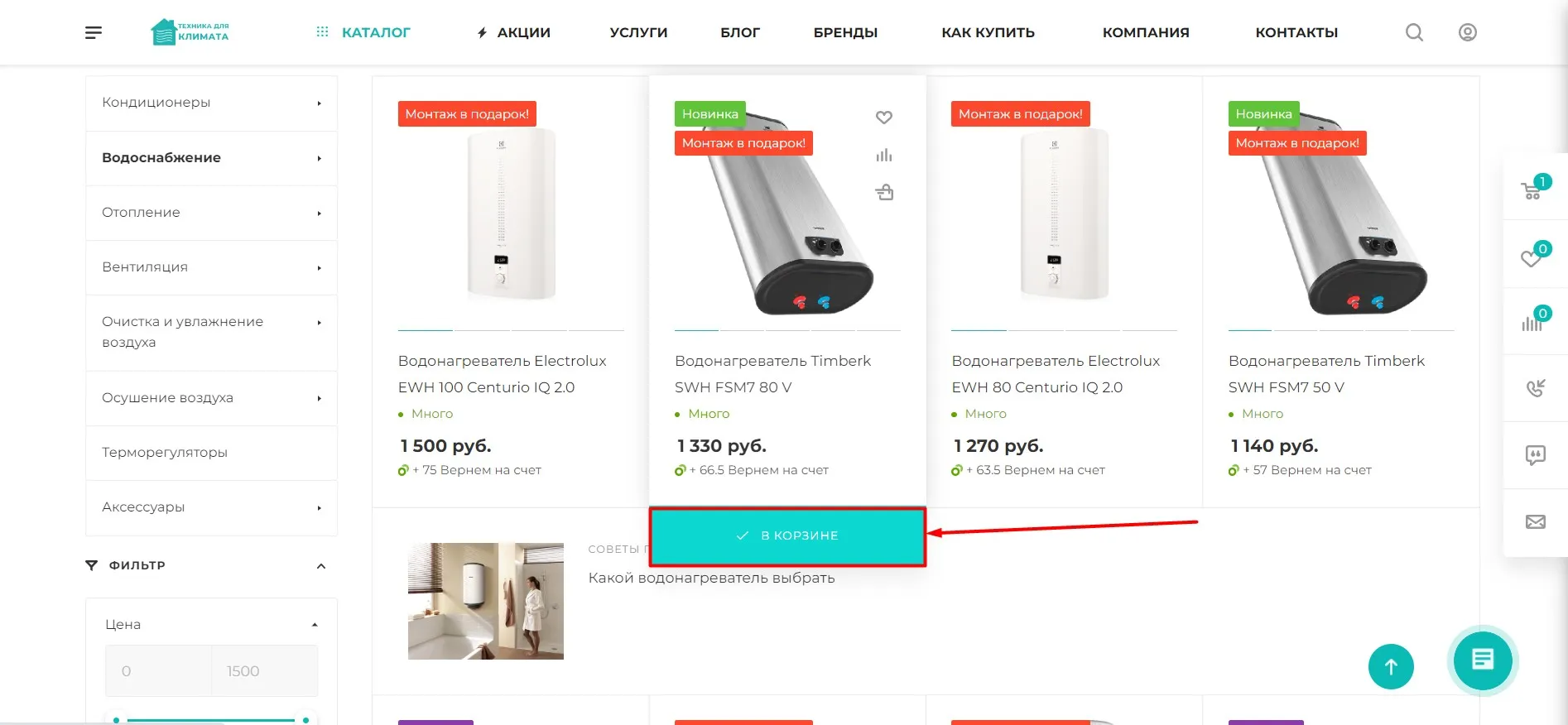 Второй способ: нажмите на кнопку "В корзине"
