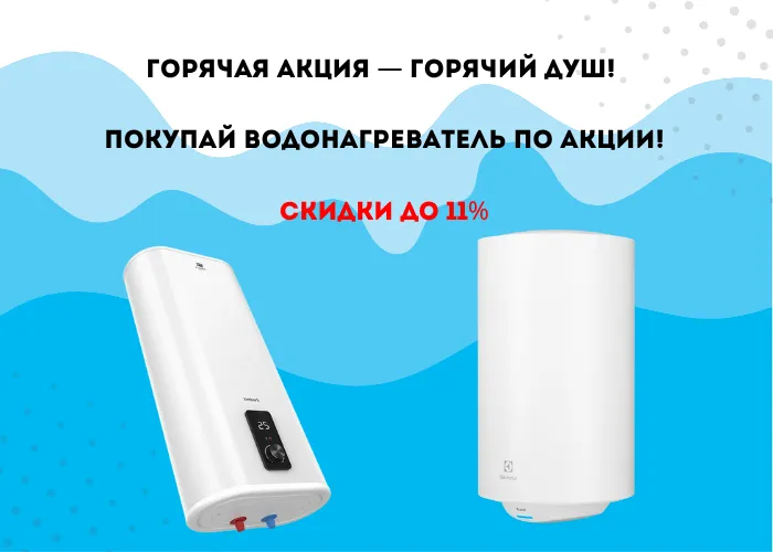 Горячая акция — горячий душ! Не промахнись — выбери водонагреватель по акции!»